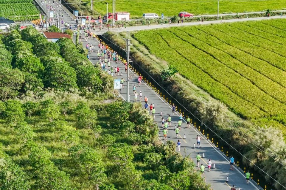 其中,马拉松赛道从西江河畔鱼米之乡苏村起跑,一路穿越万亩稻田,目之所视皆为随风摇曳的金黄稻穗,仿佛置身宫崎骏的动画世界。终点直达美的鹭湖安纳希小镇,法式风情与自然风光融合。