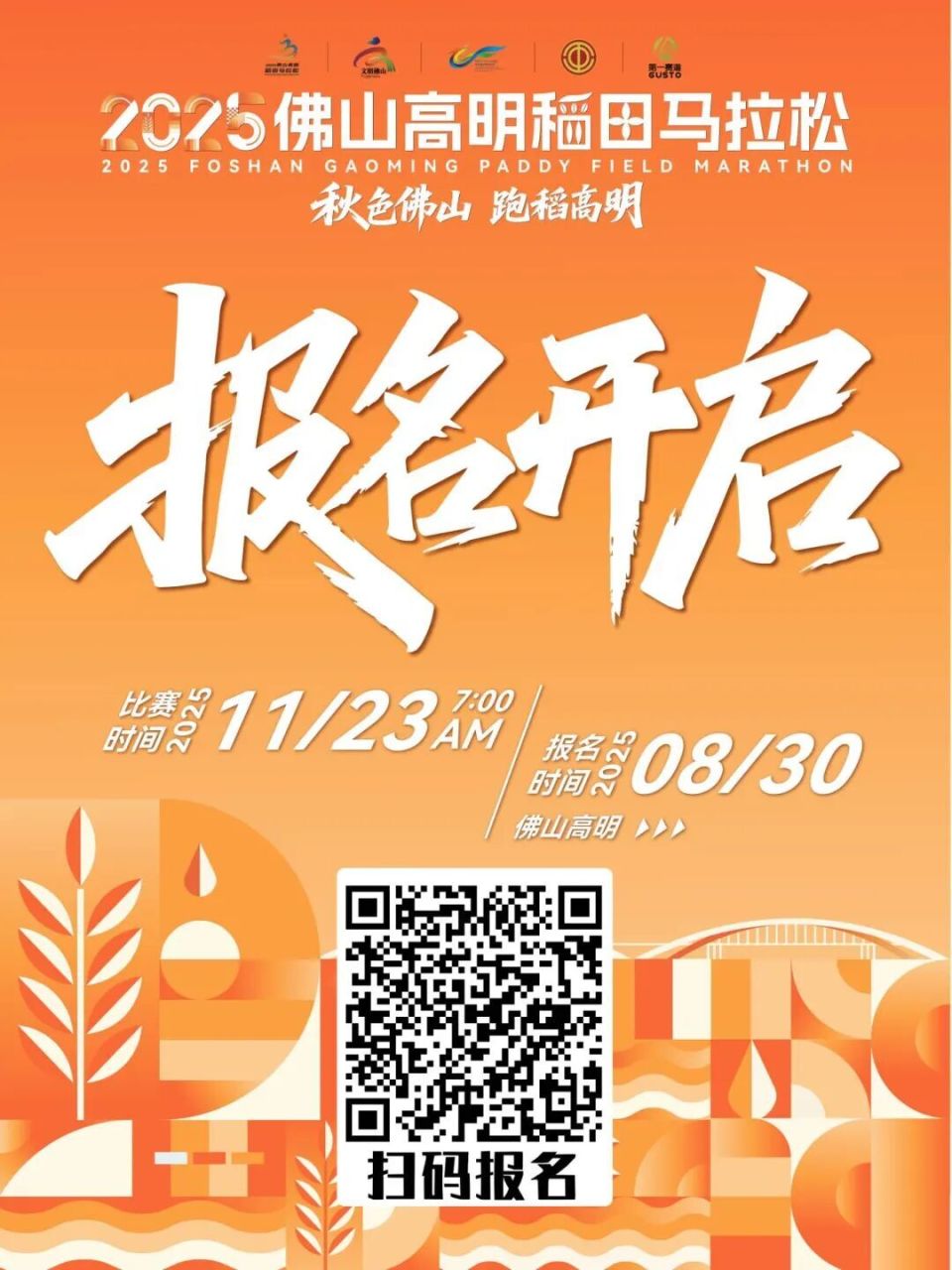 秋色佛山,跑稻高明,2025佛山高明稻田马拉松正式启动报名。这场以“稻田”为名的赛事,定档于11月23日,并在8月30日启动报名,届时带领选手穿越万亩金色稻海,跑进诗意田园。