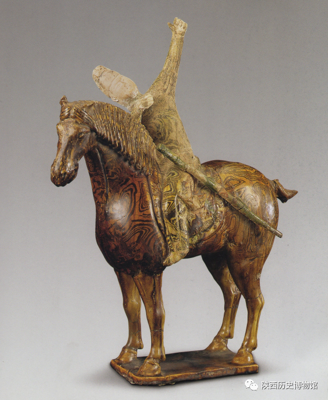△ 唐三彩绞釉骑马射猎俑 陕西历史博物馆藏